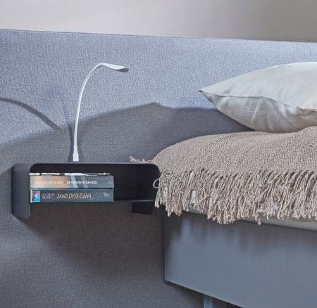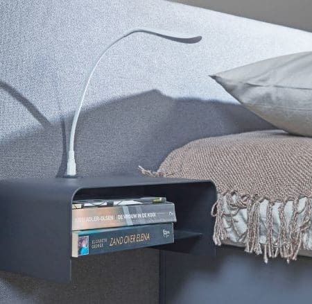 Het bed op de foto is voorzien van hoofdbord Moma. Dit hoofdbord is aan beide zijden 55 cm breder dan het bed, wat zorgt voor een moderne en luxe uitstraling.