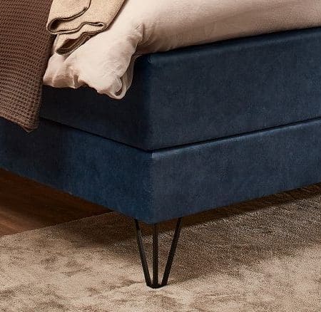 Bij deze boxspringset heb je de keuze uit verschillende moderne slanke poten in diverse metaalkleuren. Er zijn twee verschillende poothoogtes beschikbaar: 15 of 18 centimeter. Het voorbeeld op de foto heeft poten Condor in kleur zwart.